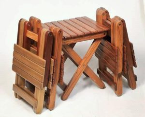 Tabourets pliants avec du bois de récupération, à la cire d’abeille et à l’huile de lin, très pratique.